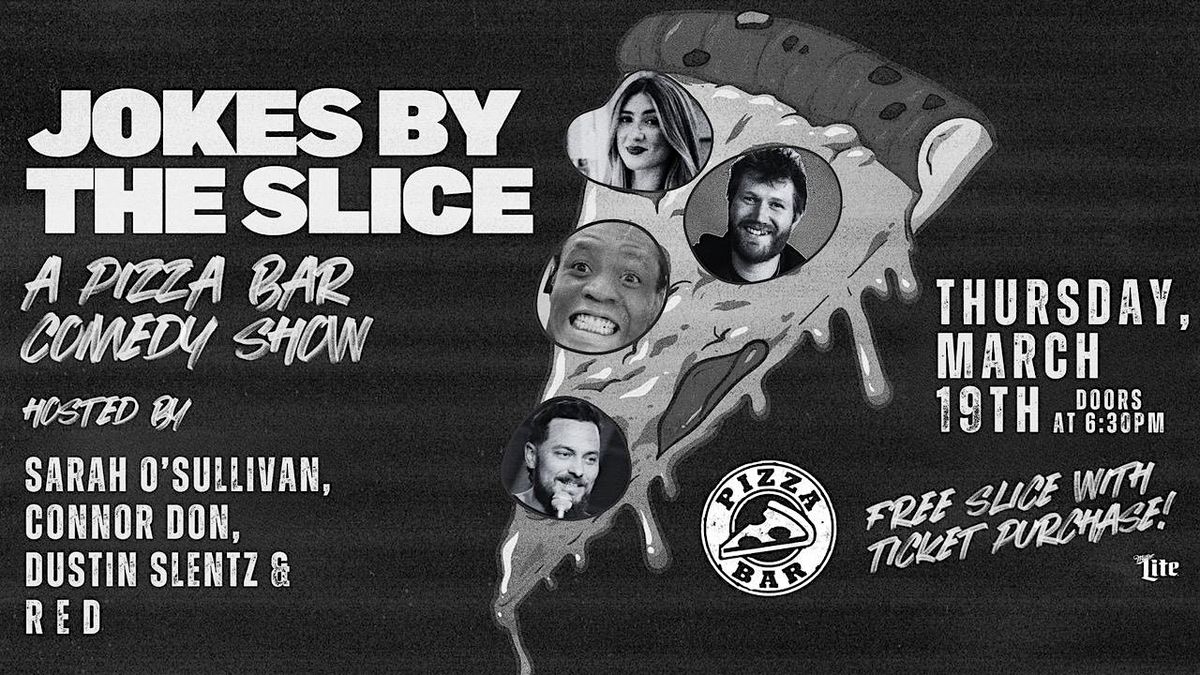 Expect big laughs, strong drinks, and a FREE slice of pizza with every ticket (because no one should laugh on an empty stomach).