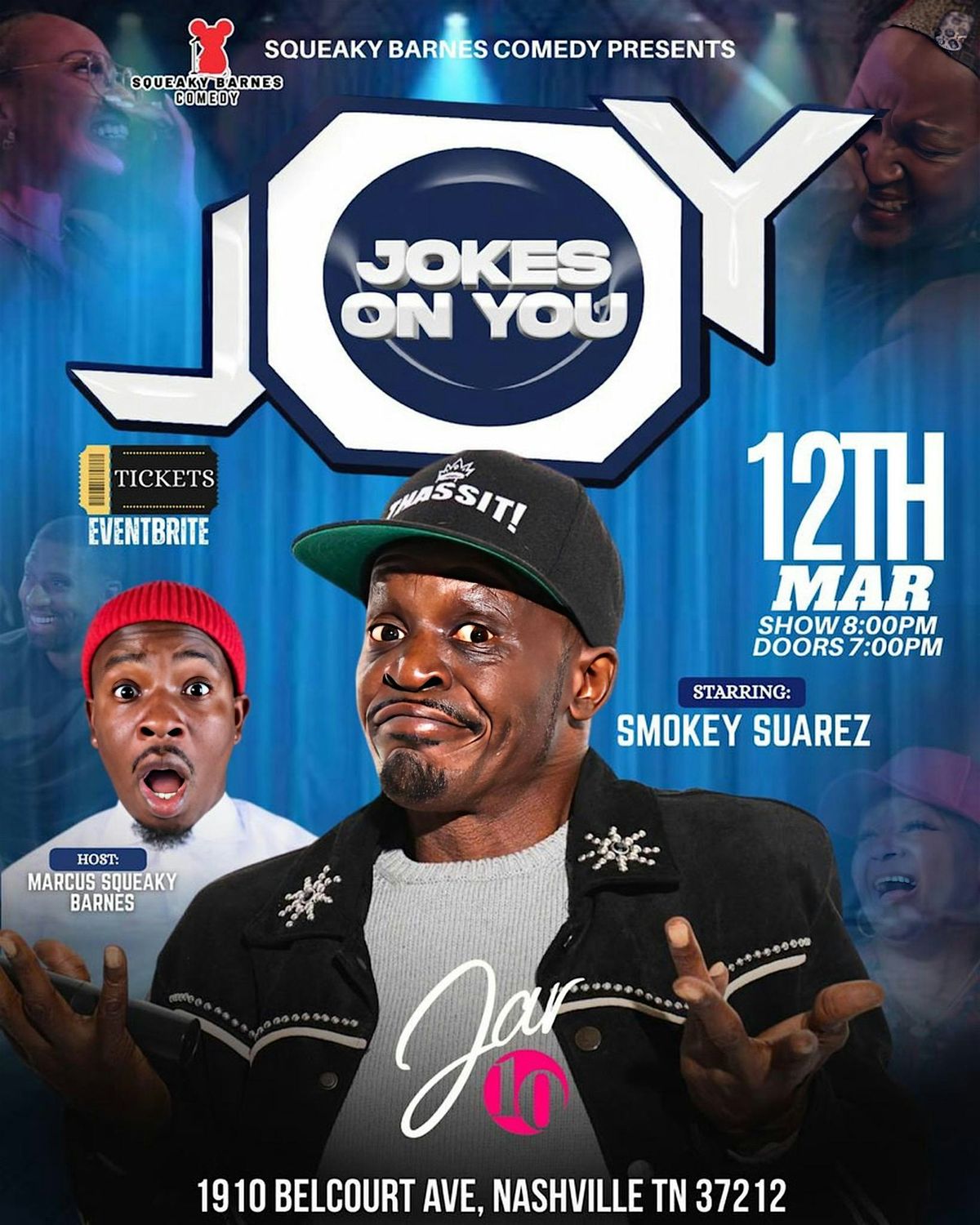 The Jokes on You Comedy Show is one of Nashville’s premier live comedy experiences, curated and hosted by Nashville comedian Marcus “Squeaky” Barnes. Known for bringing high-energy vibes and top-tier talent to the stage, Squeaky handpicks some of the hottest comedians in the game to deliver an unforgettable night of laughs.