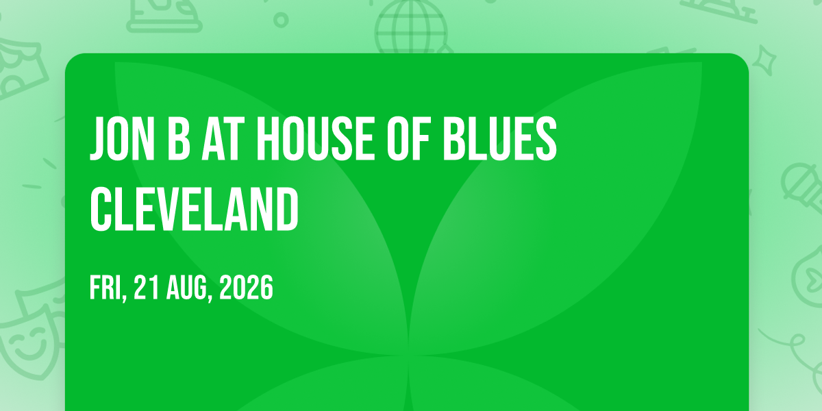 π Step into a world of wonder at Jon B at House of Blues Cleveland, where extraordinary moments await! ποΈ Located at House of Blues Cleveland in dynamic Cleveland, OH, this event will become the talk of the town. π Join us on August 21st, 2026 at 07:00 PM for a celebration that defies the ordinary. β¨ This curated experience brings together the best of entertainment, culture, and community spirit. Every detail has been thoughtfully planned to ensure an unforgettable experience for all our guests. π― Take advantage of this opportunity to be part of something special. π Early registration is recommended as space is limited!