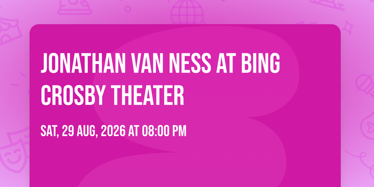 π Welcome to Jonathan Van Ness at Bing Crosby Theater, where dreams come alive and possibilities are endless! ποΈ Join us at Bing Crosby Theater in the heart of Spokane, WA for an event that defies expectations. π On August 29th, 2026 at 08:00 PM, be part of something truly extraordinary as we bring together innovation, entertainment, and pure magic. β¨ Every aspect has been carefully designed to ensure an unforgettable experience for all our guests. Whether you're seeking adventure, inspiration, or simply a break from the ordinary, this event promises to deliver beyond your wildest dreams. π Prepare for a journey into the extraordinary!