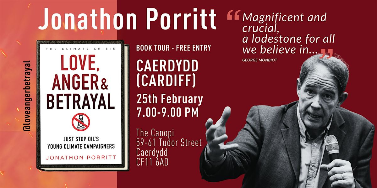 Jonathon Porritt: 'Love Anger & Betrayal'. Speaker Tour, Caerdydd (Cardiff)