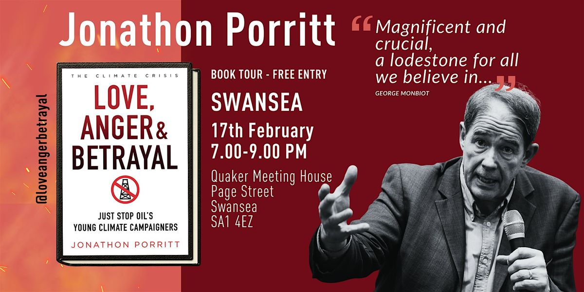 Jonathon Porritt: 'Love Anger & Betrayal'. Speaker Tour, Swansea