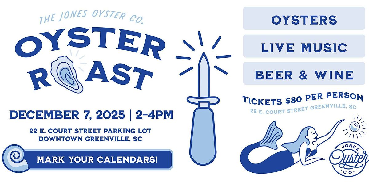 The next Jones Oyster Roast will take place on Sunday, December 7, 2025. We’ll be taking over the parking lot next to The Jones Oyster Co. from 2pm-4pm for classic roasted oysters, beverages and music. In addition to “all you can eat” roasted oysters, the menu includes select favorite Jones Oyster Co. light bites, beer, wine and bubbles.