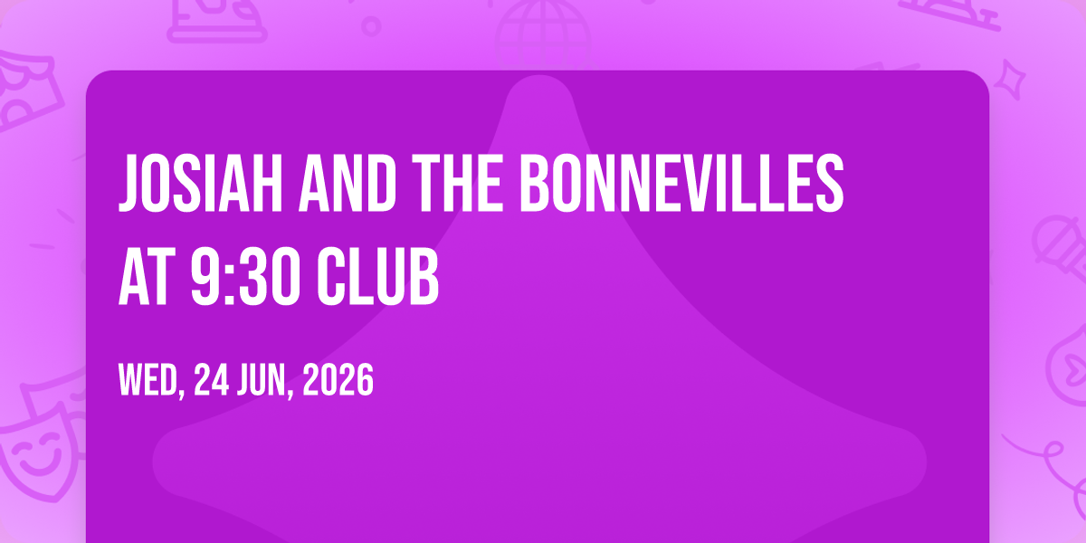 π Welcome to Josiah and the Bonnevilles at 9:30 Club, where the impossible becomes possible and dreams take flight! ποΈ Join us at 9:30 Club in the heart of Washington, DC for an event that will redefine your expectations. π On June 24th, 2026 at 07:00 PM, witness the transformation of space and time into something truly magical. β¨ It's a curated experience combining the best of innovation, entertainment, and community spirit, creating moments that will be remembered for years to come. Whether you're a first-time visitor or a seasoned enthusiast, prepare to be amazed. π Book now to ensure your place in this unforgettable experience!