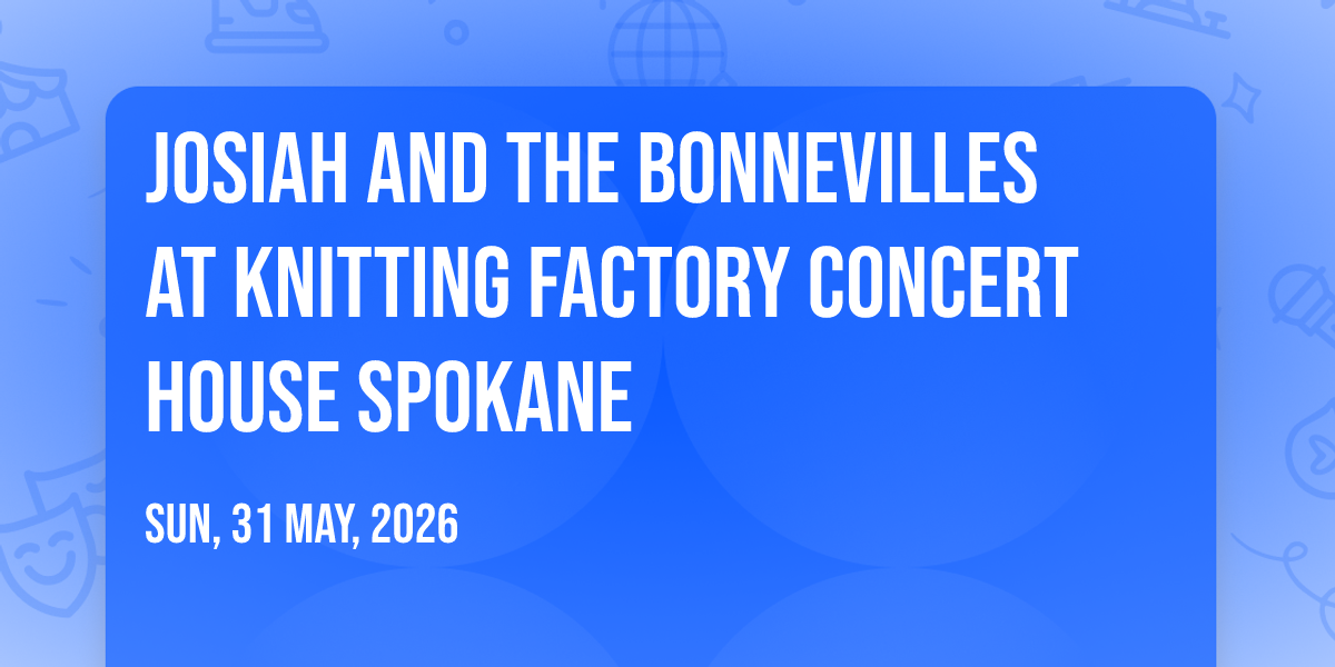 ✨ Experience the magic of Josiah and the Bonnevilles at Knitting Factory Concert House Spokane, where moments become memories that last a lifetime! 🏛️ The iconic Knitting Factory Concert House Spokane in Spokane, WA sets the perfect stage for an unforgettable celebration on May 31st, 2026 at 08:00 PM. 🌟 It's been a curated experience that brings together the best of entertainment and innovation, creating an atmosphere of wonder and excitement. From the moment you arrive, you'll be immersed in a world where the ordinary transforms into the extraordinary. 🎊 Book early to secure your place in what promises to be an event that will be talked about for years to come!