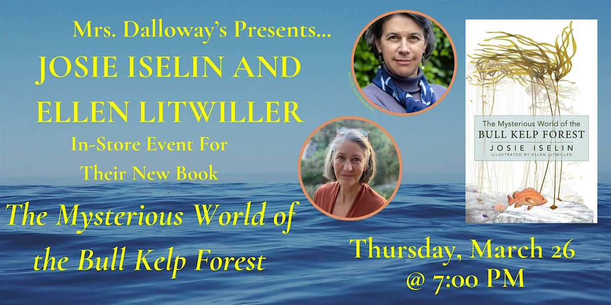 Join us at Mrs. Dalloway's Bookstore on Thursday, March 26 at 7:00 PM when author Josie Iselin and illustrator Ellen Litwiller come to the store to present thier new book The Mysterious World of the Bull Kelp Forest. Their presentation will include a slideshow of images from the book and they will sign copies after the discussion.