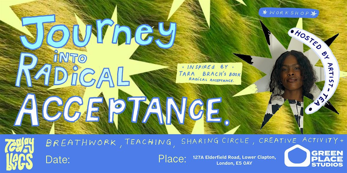 Come join us for Journey into Radical Acceptance, a warm and welcoming workshop led by Tide Adesanya (@teadayblogs), an Artist and Workshop facilitator. Inspired by the work of Tara Brach, this workshop will help us learn how to practice acceptance in a real, grounded, actually-doable way. Located in a brand new creative space in the heart of Hackney founded by a creative couple, Jay and Annika