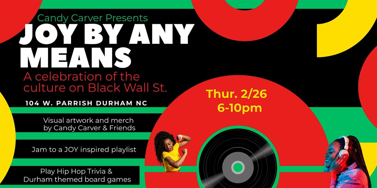 Join Candy Carver and Friends for JOY By Any Means: An energizing, Joy Playlist followed by a hip hop trivia game night. Enjoy the walls full of artwork, light refreshments and grab some JOY inspired merch or prints.
