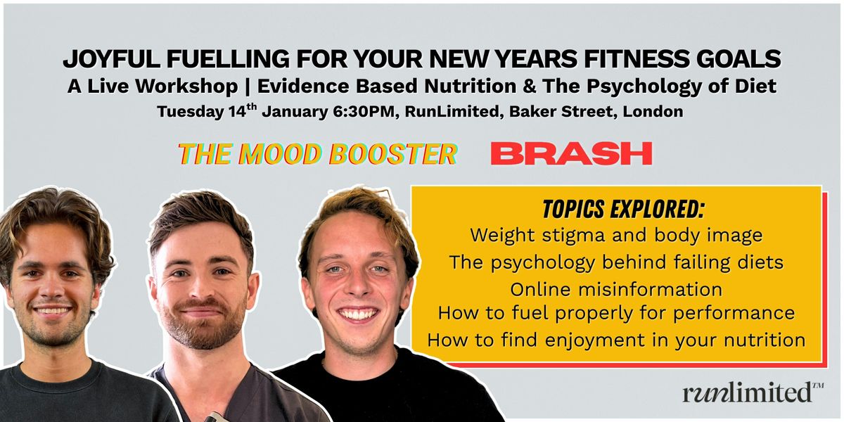 Hosted by Dr Marcus Bull and Charlie Allnutt from The Mood Booster, alongside James Brash, Registered Dietitian and founder of Brash Nutrition, this interactive session blends psychology, nutrition science, and lived fitness experience to cut through the noise and help you create healthier, more balanced, and more joyful eating habits in 2026.