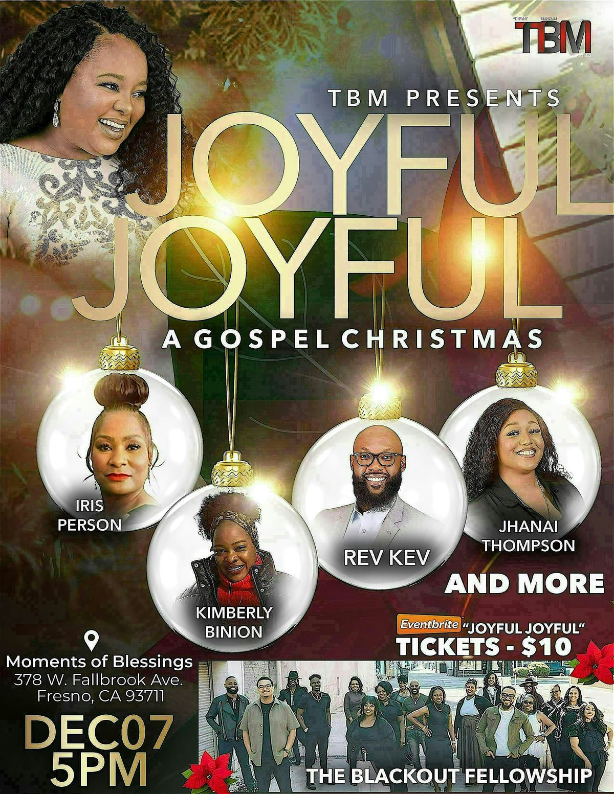 Welcome to Joyful Joyful - A Gospel Christmas! Join us for an evening filled with soul-stirring music, heartwarming performances, and the joy of the holiday season - gospel style! This in-person event will take place at Moments of Blessings Church, where we will come together to celebrate Jesus - the true reason for the season. Get ready to be uplifted and inspired by the sounds of gospel music and the message of love and hope. Don't miss out on this special event - get your tickets today!