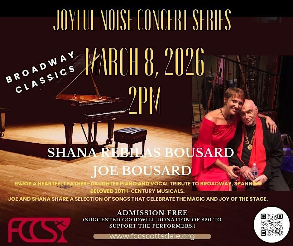 Enjoy a heartfelt father–daughter piano and vocal tribute to Broadway! Spanning beloved 20th-century musicals by Rodgers and Hammerstein, Kander and Ebb, Jerome Kern, and other legendary composers, alongside contemporary favorites. Joe and Shana invite you to share in rare and cherished songs that celebrate the magic and joy of the stage.