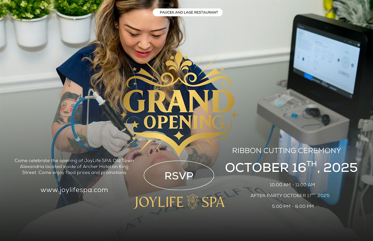 Join us as we celebrate the official ribbon cutting of JoyLife SPA, a new luxury destination inside the Archer Hotel in the heart of Old Town Alexandria. JoyLife SPA is dedicated to holistic wellness, premium skincare, and a five-star experience designed for business executives, luxury travelers, and those who value the art of self-care. Guests will enjoy light refreshments, spa tours, and exclusive grand opening specials. Come be among the first to experience this elegant new retreat that brings together beauty, relaxation, and community in one unforgettable setting.