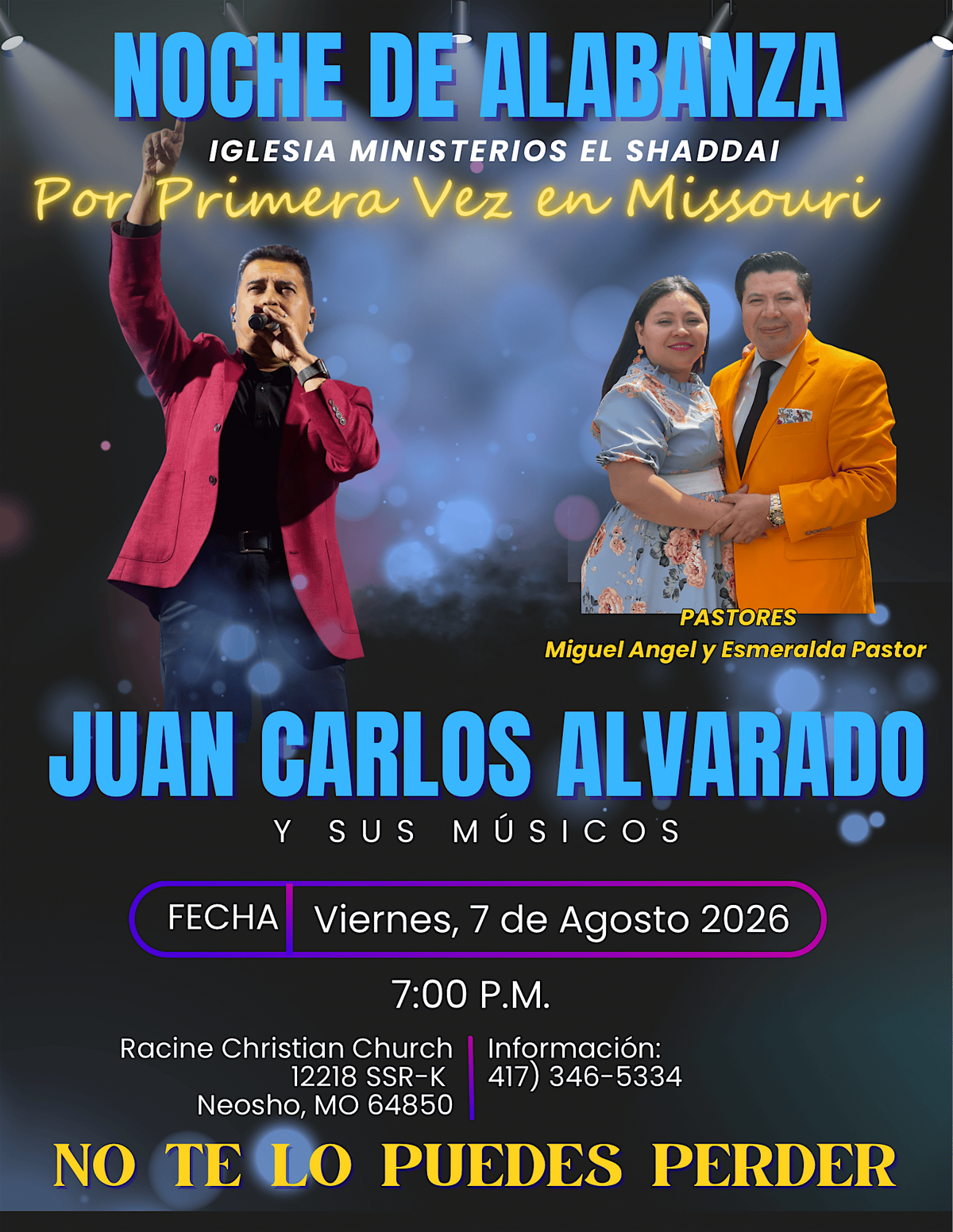 Por primera vez en Neosho MO en una noche de adoración Juan Carlos Alvarado Y sus músicos.