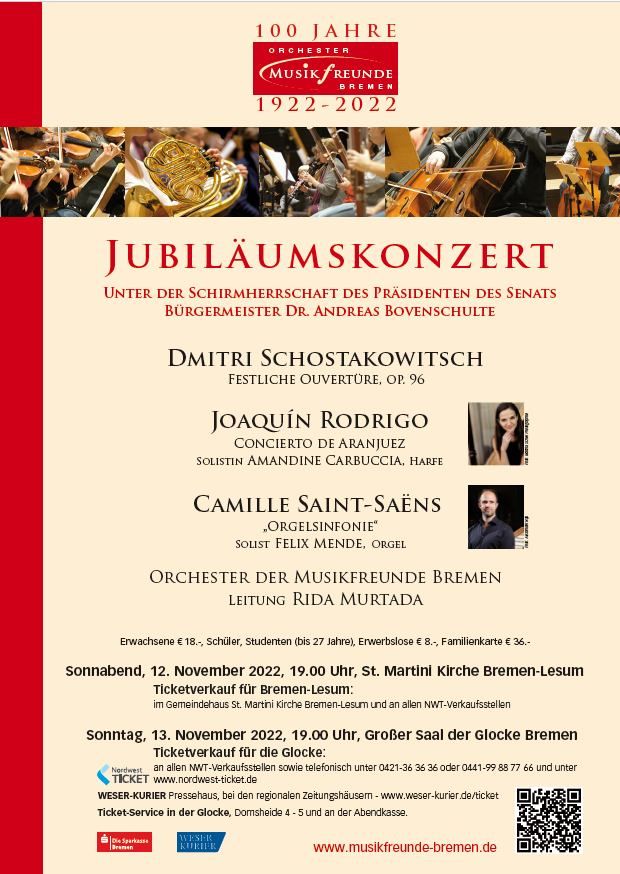 Das Konzerthighlight des Jahres naht! In diesem Jahr feiern wir unseren 100. Geburtstag. Damit sind wir das älteste Laeienorchester in Bremen. Unser Jubiläum feiern wir einem großen Jubiläumskonzert am 13.November in der Glocke.