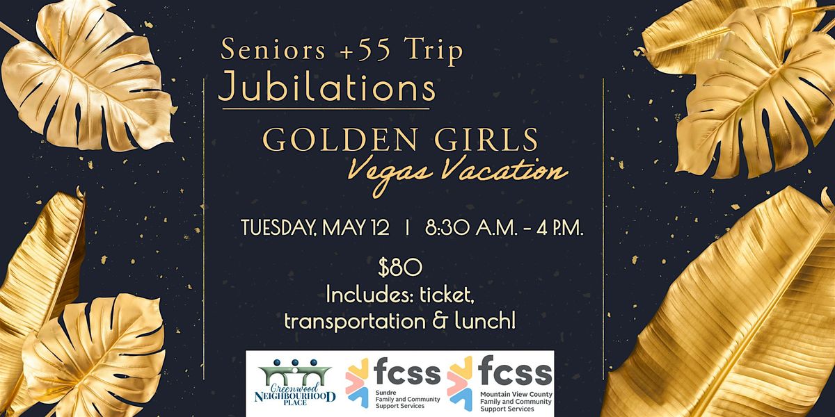 Join us on our 55+ Seniors Trip to a lively stage show featuring the beloved characters from The Golden Girls! Follow along as they head to Las Vegas for a hilarious bachelorette adventure—proving it’s never too late to have fun. Enjoy an afternoon full of laughter, great music, and unforgettable moments!