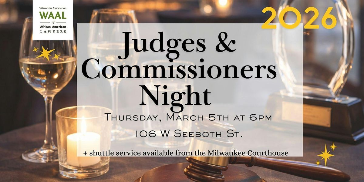 Welcome to Judges & Commissioners Night 2026, hosted by the Wisconsin Association of African-American Lawyers (WAAL).