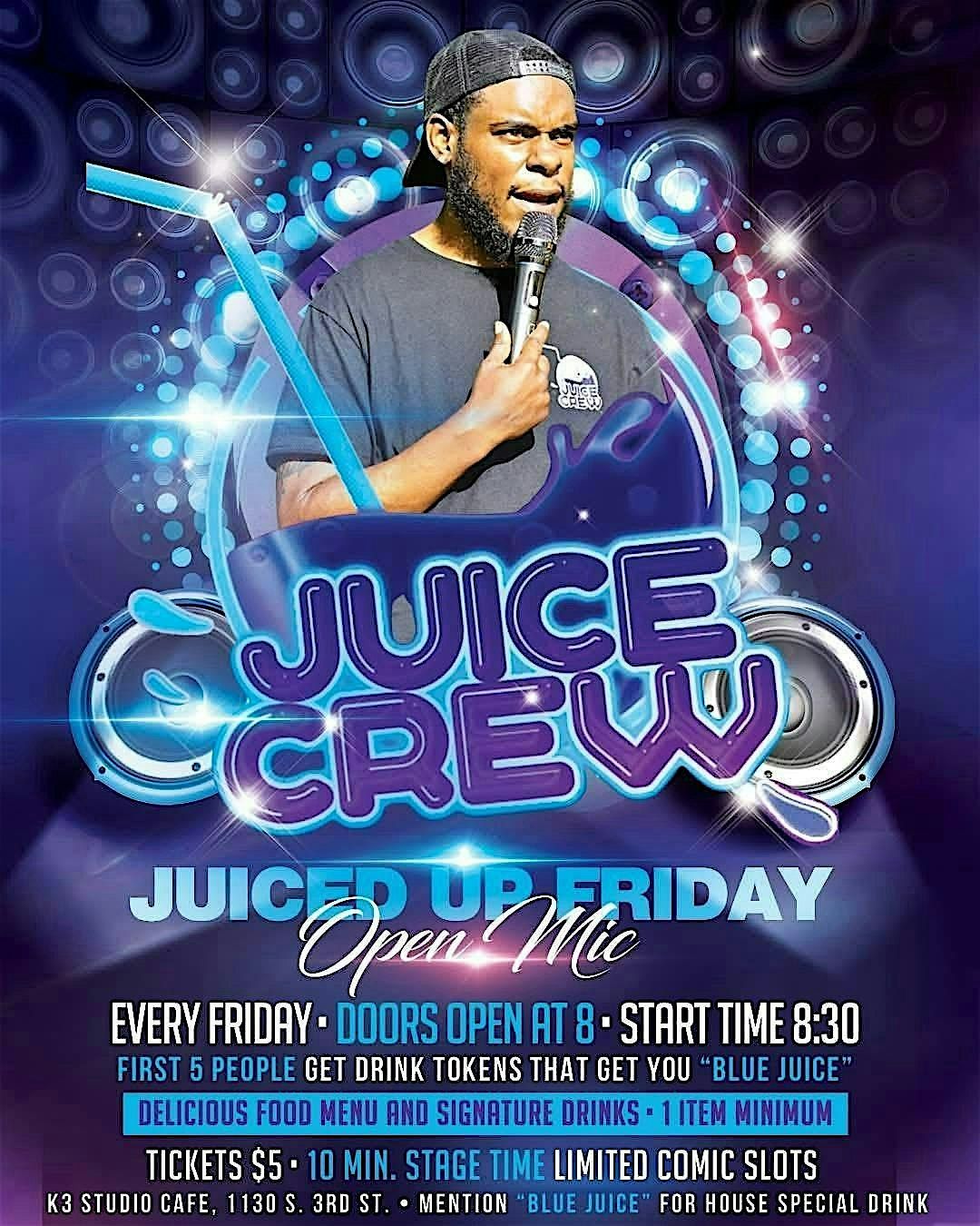 Come hang out at K3 Studio Cafe for a chill open mic session! Whether you wanna perform or just vibe with some cool people, this is the spot. Door open at 8pm show start at 8:30pm. Not to mention the first 5 people get exclusive "Blue Juices" couresy of the host after you pay your admission fee! Mark your calendar for Friday every week, because its now your new favorite day! So bring your friends, your talent, or just your good energy. See you there!
