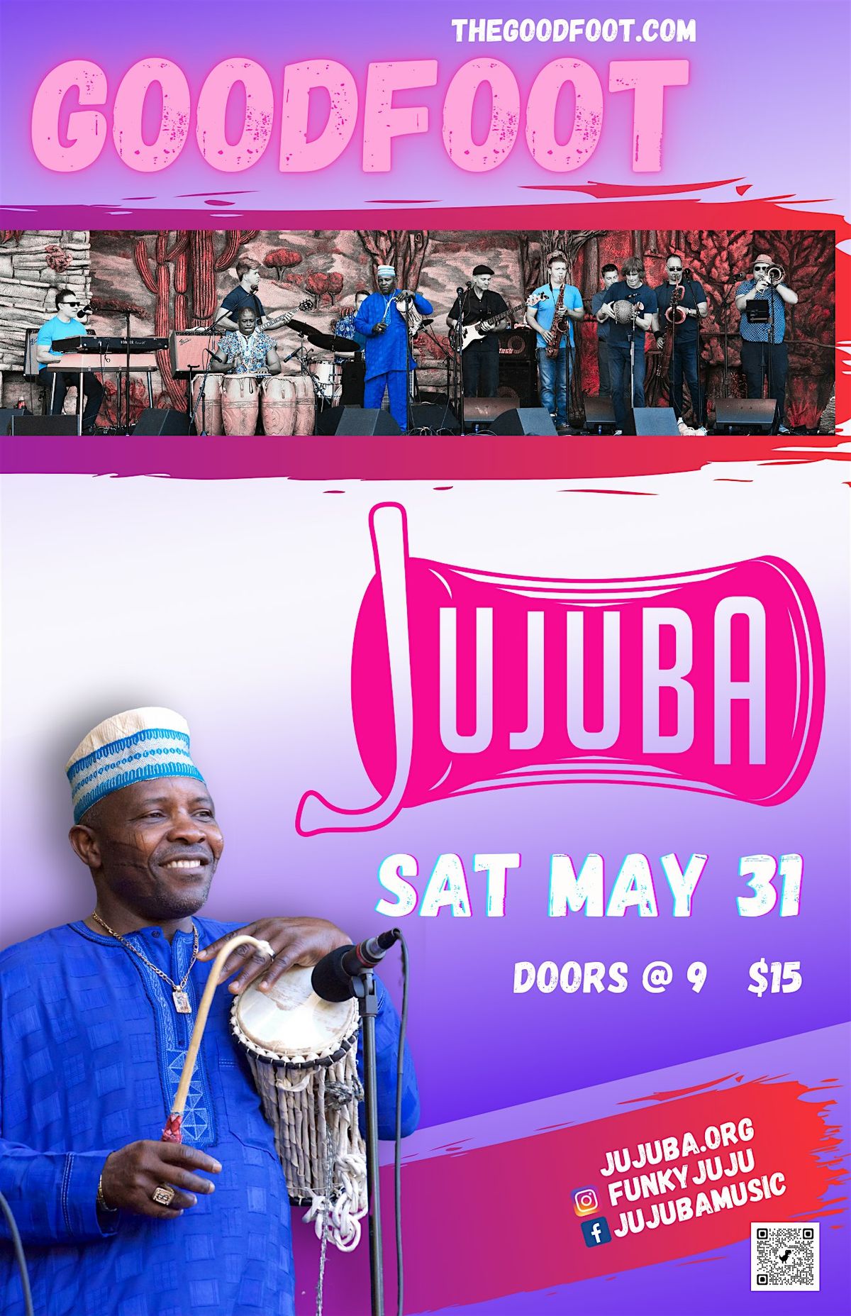 Jujuba delivers a funky, danceable style of Nigerian Afrobeat and Juju music. The strength of the 10-piece revolves around its energetic cohesion between percussion, rhythm and horn sections. The band features Nojeem Lasisi from Igbo Ora, Oyo State, in Nigeria. He ranks among the world’s elite talking drum players. Nojeem was given his first drum at age four by his father, also a master drummer, who handed down to Nojeem its powerful language. As a member of Nigerian superstar King Sunny Ade's group, the African Beats, Nojeem toured the world and appears on numerous recordings with King Sunny, including "Seven Degrees North" and "Odu”. Come dance! PLEASE NOTE THE EARLIER DOOR TIME.