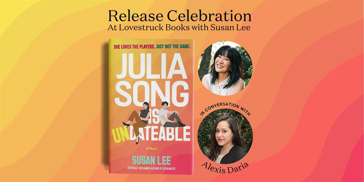 Join us for a heartwarming evening celebrating the release of by USA Today bestselling author Susan Lee! This in-conversation event features Susan alongside fellow romance powerhouse and USA Today bestselling author of You Had Me at Hola, Alexis Daria, as they dive into themes of love, family expectations, and finding connection when you least expect it.Tickets include a copy of Julia Song Is Undateable—a fresh, funny, and emotional rom-com already earning high praise from readers and reviewers alike.Authors will be available for a meet and greet following the conversation, and copies of Alexis Daria’s Along Came Amor will be available for purchase at the event. Grab a drink, settle in, and get ready for an evening full of humor, heartfelt moments, and swoonworthy spice!