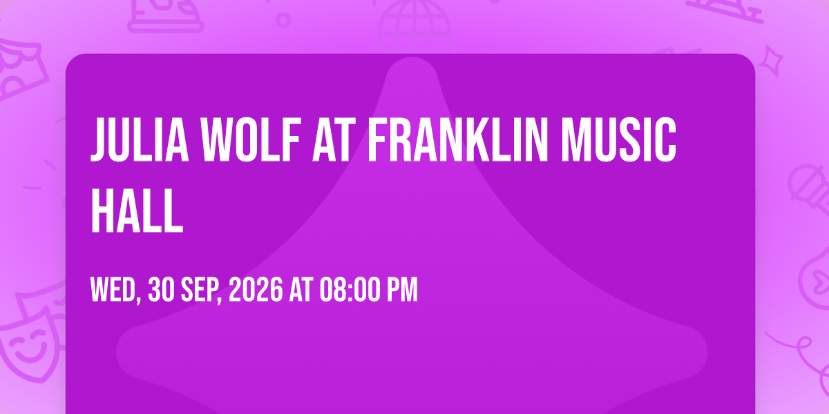 ๐ Welcome to Julia Wolf at Franklin Music Hall, where dreams come alive and possibilities are endless! ๐๏ธ Join us at Franklin Music Hall in the heart of Philadelphia, PA for an event that defies expectations. ๐ On September 30th, 2026 at 08:00 PM, be part of something truly extraordinary as we bring together innovation, entertainment, and pure magic. โจ Every aspect has been carefully designed to ensure an unforgettable experience for all our guests. Whether you're seeking adventure, inspiration, or simply a break from the ordinary, this event promises to deliver beyond your wildest dreams. ๐ Prepare for a journey into the extraordinary!