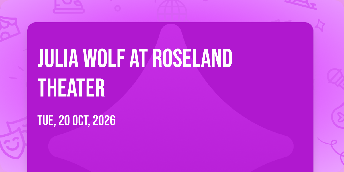 π Welcome to Julia Wolf at Roseland Theater, where dreams come alive and possibilities are endless! ποΈ Join us at Roseland Theater in the heart of Portland, OR for an event that defies expectations. π On October 20th, 2026 at 08:00 PM, be part of something truly extraordinary as we bring together innovation, entertainment, and pure magic. β¨ Every aspect has been carefully designed to ensure an unforgettable experience for all our guests. Whether you're seeking adventure, inspiration, or simply a break from the ordinary, this event promises to deliver beyond your wildest dreams. π Prepare for a journey into the extraordinary!