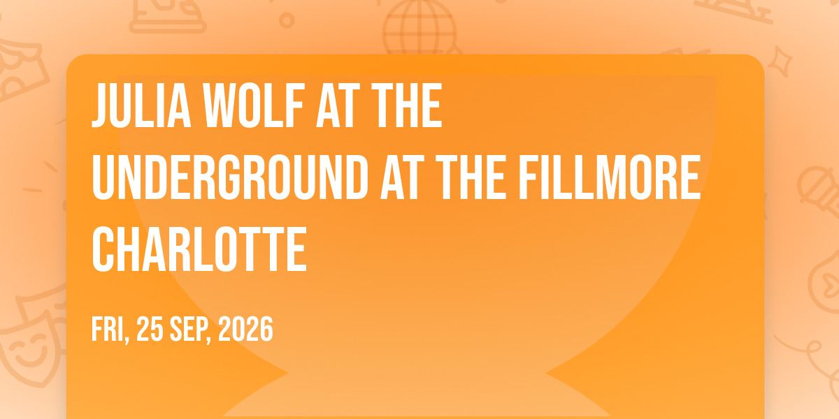 ๐ Journey into wonder at Julia Wolf at The Underground at The Fillmore Charlotte, where extraordinary experiences await around every corner! ๐๏ธ Set against the backdrop of The Underground at The Fillmore Charlotte in dynamic Charlotte, NC, this event promises to exceed all expectations. ๐ Join us on September 25th, 2026 at 08:00 PM for a celebration that combines innovation, entertainment, and community spirit in perfect harmony. โจ There will be an atmosphere where memories are made and stories come alive, ensuring every guest experiences something truly remarkable. ๐ This is more than just an event; it's a journey into the extraordinary!