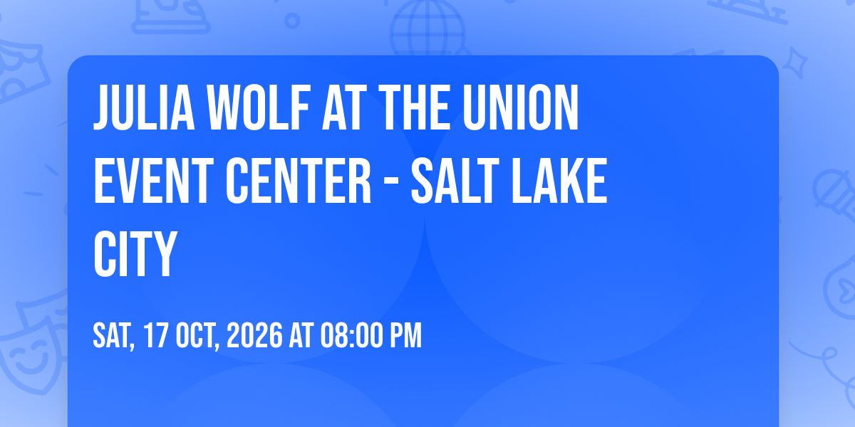π Welcome to Julia Wolf at The Union Event Center - Salt Lake City, where the impossible becomes possible and dreams take flight! ποΈ Join us at The Union Event Center - Salt Lake City in the heart of Salt Lake City, UT for an event that will redefine your expectations. π On October 17th, 2026 at 08:00 PM, witness the transformation of space and time into something truly magical. β¨ It's a curated experience combining the best of innovation, entertainment, and community spirit, creating moments that will be remembered for years to come. Whether you're a first-time visitor or a seasoned enthusiast, prepare to be amazed. π Book now to ensure your place in this unforgettable experience!