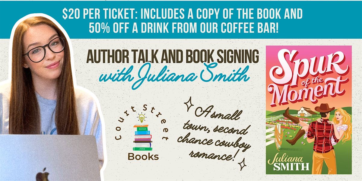 📣 Calling all romance book lovers! 📣 We are thrilled to announce an author talk and book signing on May 20th with romance author Juliana Smith! 🩷 📚 Spur of the Moment by Juliana Smith is a young adult cowboy romance novel about 17-year-old Lottie Turner, a former bull rider sidelined by epilepsy, who reconnects with her childhood best friend and crush, Walker, over a summer bucket list, reigniting their feelings as they navigate new challenges and old sparks. 💘 The PERFECT spring to summer read!