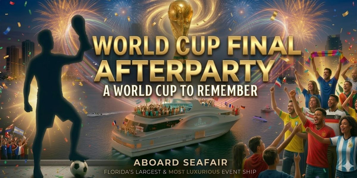 Step aboard Seafair for an unforgettable nighttime World Cup Final Party aboard Florida’s largest and most luxurious event ship. Enjoy the excitement alongside a skyline cruise, gourmet food, open bar, festive entertainment and replays of the day's game available onboard.