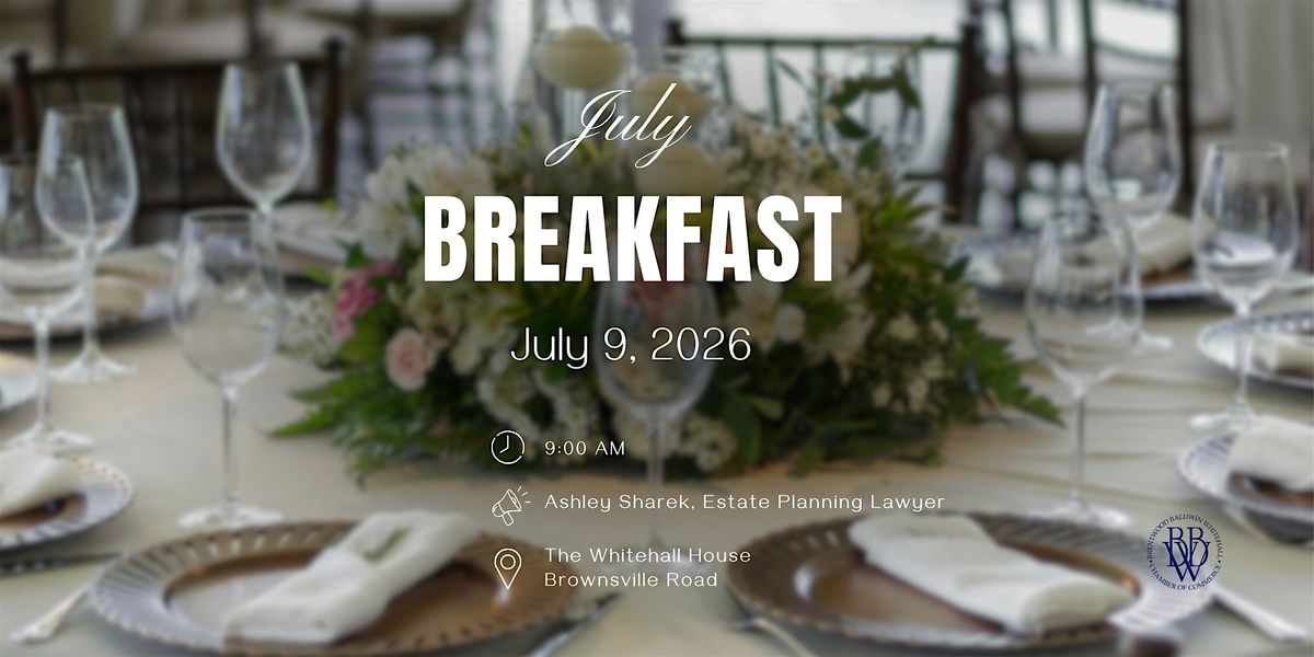 Join the Brentwood Baldwin Whitehall Chamber of Commerce for our July Breakfast featuring Ashley Sharek of Entrusted Legacy Law.