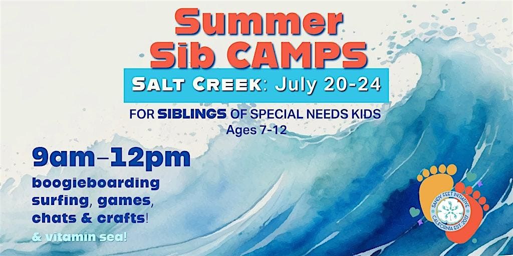 JOIN US AT SALT CREEK BEACH JULY 20-24: 9AM-12PM for some #SERIOUSFUN with other sibs. We'll boogie board, play some beach games, create fun crafts, & have some chats all about being a sib! And don't forget all the vitamin SEA you can soak up!