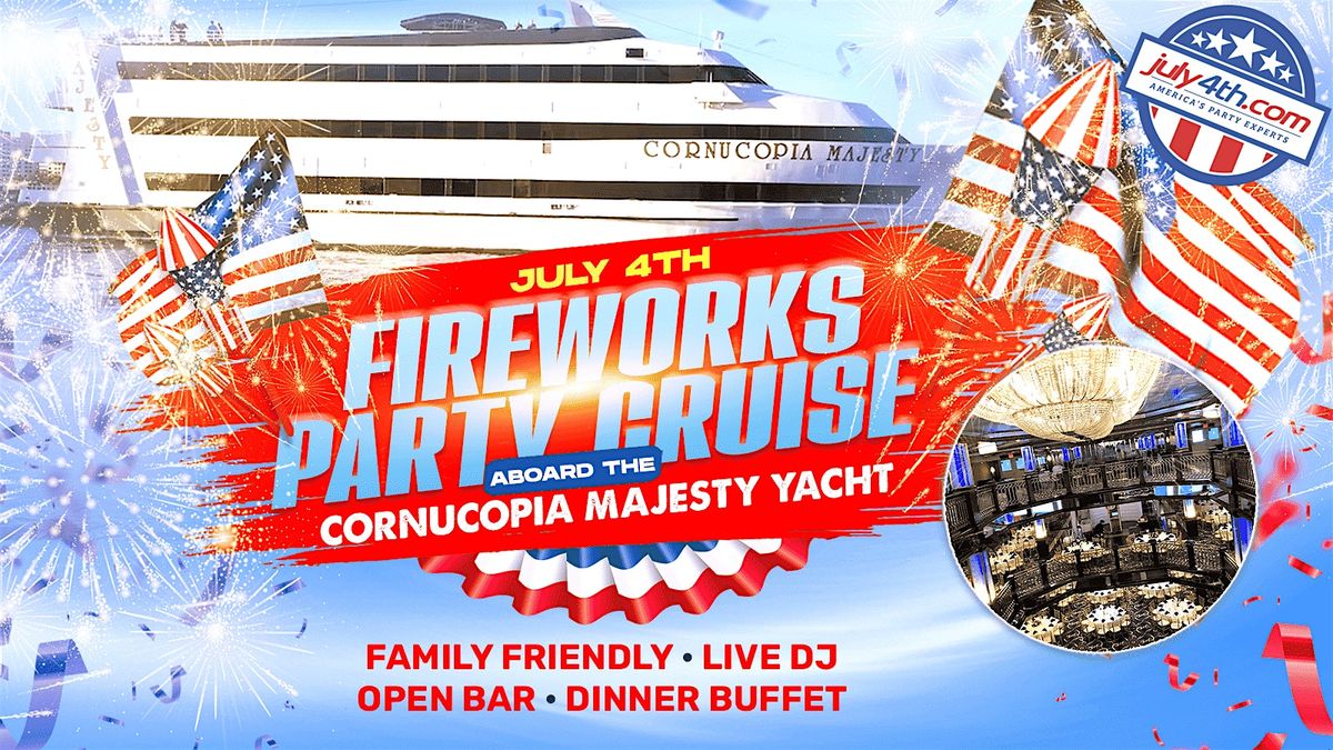 This year's July 4th New York cruise offers you one of the best fireworks experiences you'll ever have! As the fireworks display begins in the night sky, the Cornucopia Majesty stops sailing and gives you a front-row seat to the show.
