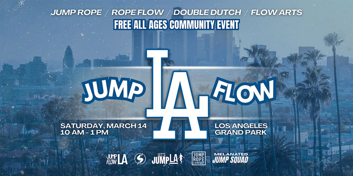 Get ready to jump and flow into an epic day at a FREE all ages community event hosted by Jump Flow LA, SlushRopes, Let's Jump LA, and Melanated Jump Squad! Located at the iconic Grand Park in the heart of Downtown LA, this outdoor event features a nearby Starbucks, public restrooms, tables, and a large public water fountain splashpad for the kids!