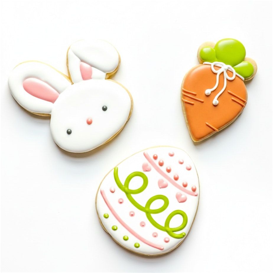 In this cookie decorating class we will decorate 3 cookies using 4 icing colors. We are so egg-cited for this class!