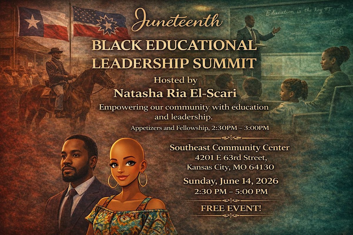 A community conversation exploring the past, present, and future of Black education will take place in Kansas City during a special Juneteenth Education Summit and Book Signing on Sunday, June 14, 2026 from 2:30 PM – 5:00 PM at the Southeast Community Center, 4201 E 63rd St, Kansas City, MO 64130.