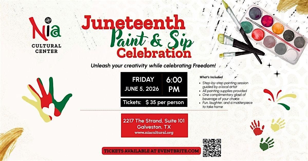Join us for a fun and relaxed evening at the Nia Cultural Center on June 5, 2026, at 6:00 PM (Central Time). Unleash your creativity while sipping your favorite drink and celebrating Juneteenth with friends old and new. No experience needed—just bring your good vibes and get ready to paint, sip, and enjoy great company. Don’t miss out on this awesome in-person event!