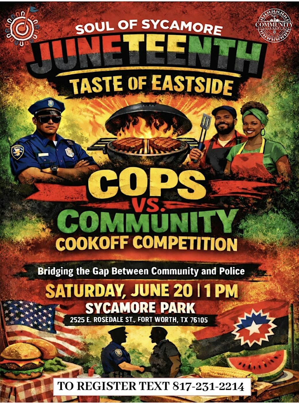 Join us in person for a fun-filled day celebrating Juneteenth with an epic Cook Off! Watch as local cops and community members face off in a friendly battle for the tastiest dishes. Good vibes, great food, and awesome company guaranteed. Don’t miss out on this unique chance to connect, share laughs, and enjoy some seriously delicious eats together. See you there!