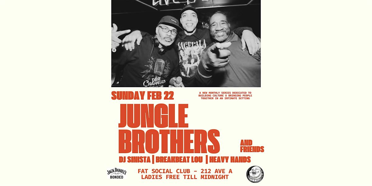 Get ready for an epic night with the Jungle Brothers and Friends hitting the stage live! This in-person event promises good vibes, great tunes, and a chance to hang out with some awesome people. Don't miss out on the fun — it's all about the music, the crew, and good times. Bring your energy and let's make it a night to remember!