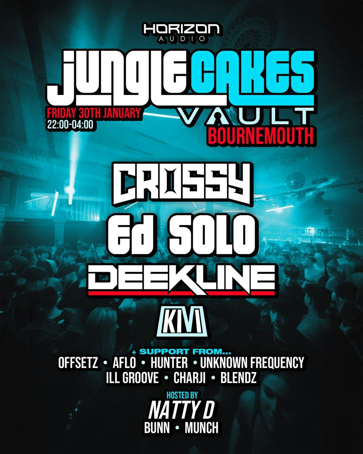 Jungle Cakes return to Bournemouth alongside Horizon Audio for a huge DnB gathering. We’re kicking things off for our first 2026 show with an unbelievable 2 stage line up at The Vault…