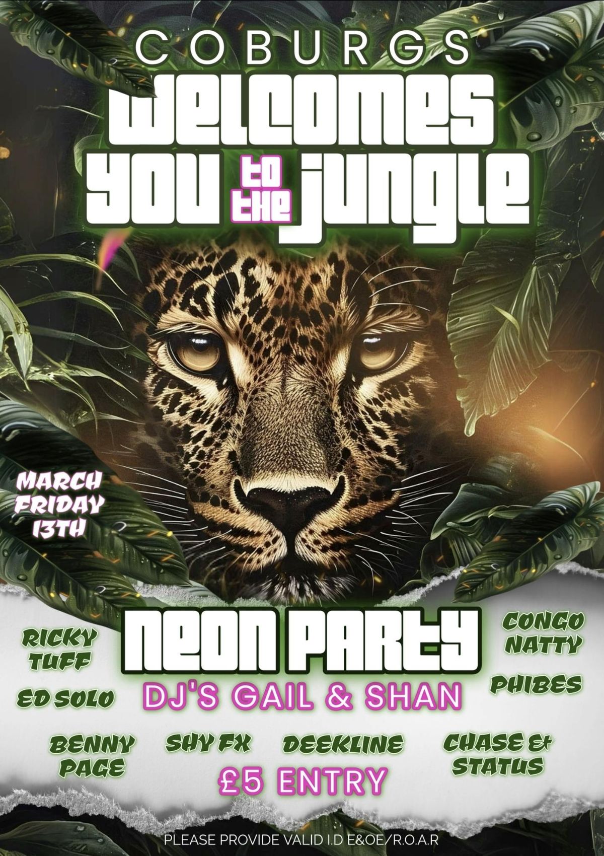 Escape the concrete. Enter the Neon Jungle.On Friday, March 13th, Coburgs transforms. Step into a world where tropical wildness meets high-def neon. We have Dj's Gail & Shan playing you Jungle and Drum & Bass all thought the night with a set you will not forget.