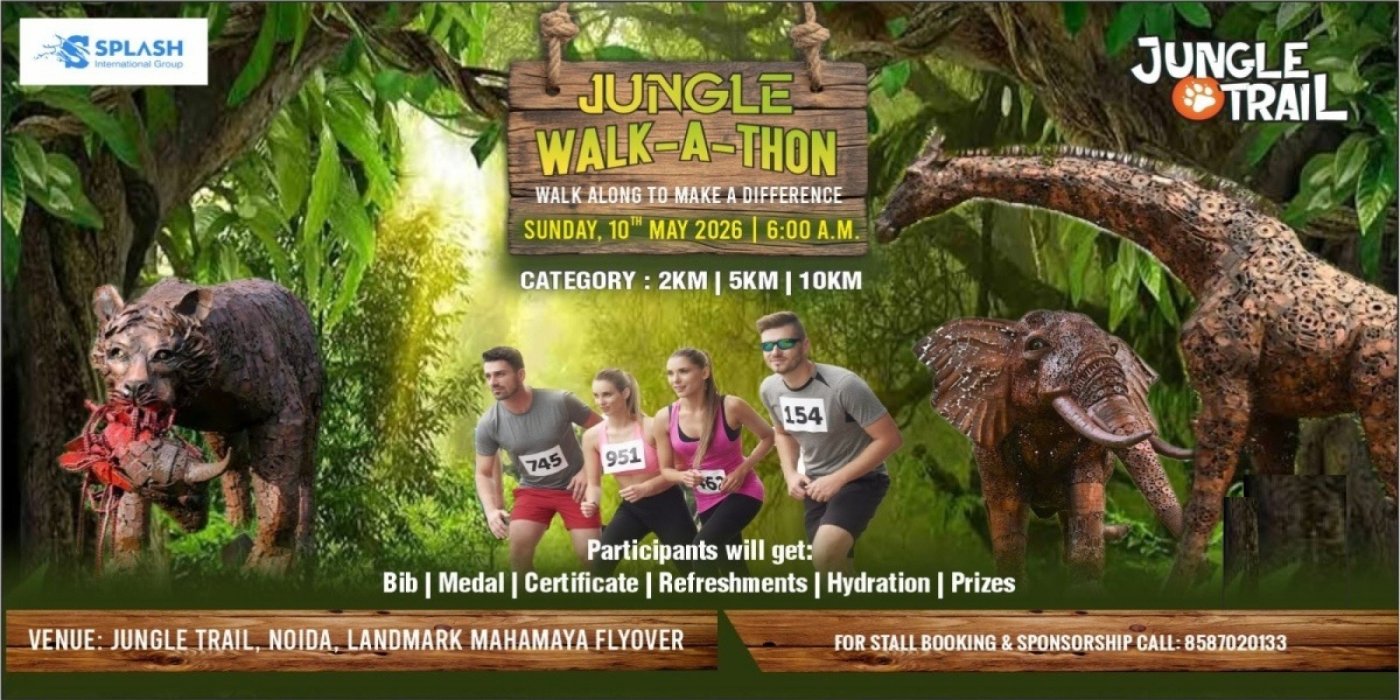 Splash Walkathon/Marathon: Join Jungle Walkathon for the first time in Noida, as it will give an exciting experience to all participants to walk and run through the green lush Jungle park showcasing Wild Animals made of waste materials. Refreshing sports and lifestyle activity. Together, people contribute to the making of a healthy community in a fun-filled manner with live Zumba,Yoga,Fitness Challenge,Gifts,Medals,Certificates and prizes too.