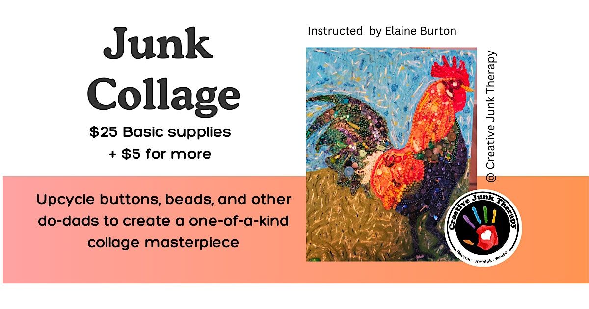 Elaine guides you through the process of choosing and layering pieces to create a dimentional unique image or scene with found objects, trinkets and junk! She will have samples art for ideas and inspiration.