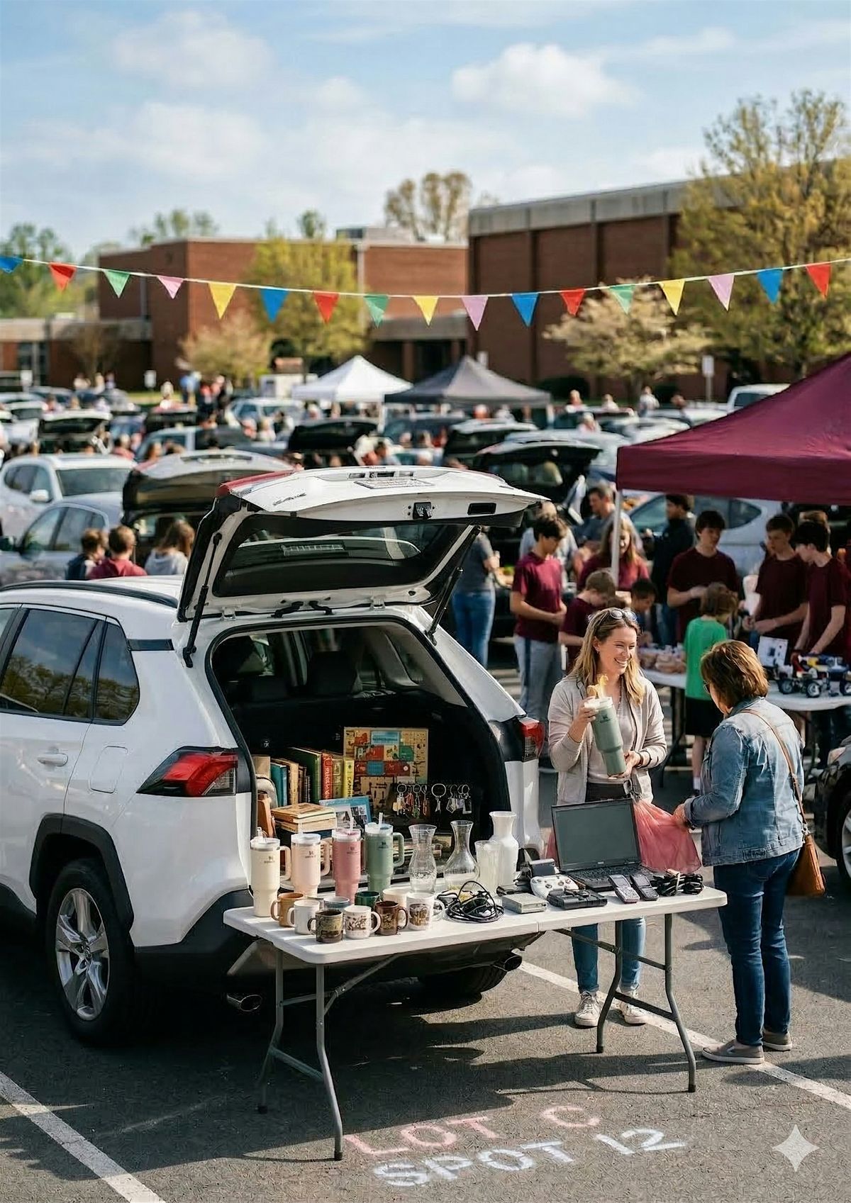 For Sellers: Reserve two parking spaces for just $12, or upgrade to a VIP spot for $20. You can bring your vehicle, pop the trunk, and start selling. Vendors can begin setting up at 6:30 AM. To lock in your spot register here, or you can pay by check at check-in (first come, first served).