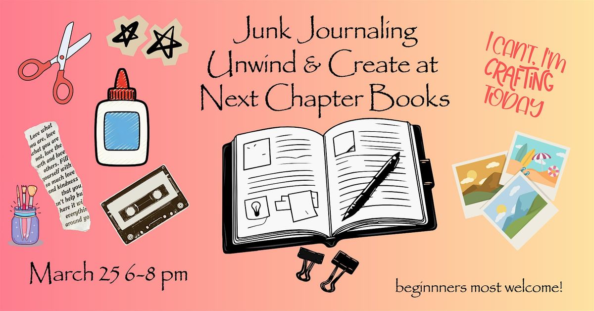 Ready to relax and get crafty? Join us in person for junk journaling! Whether you're a newbie (Sarah) or experienced (bookstore friends Lexi & Malik), this chill event is all about unwinding and creating with others.