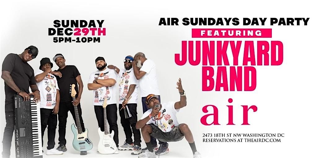Come join us for a Sunday Funday at Air Restaurant & Lounge hosted by the one and only Junkyard Band! Get ready for a day filled with live music, great vibes, and delicious food and drinks. This in-person event is the perfect way to unwind and enjoy some fantastic entertainment. Don't miss out on this epic day party - mark your calendars now!