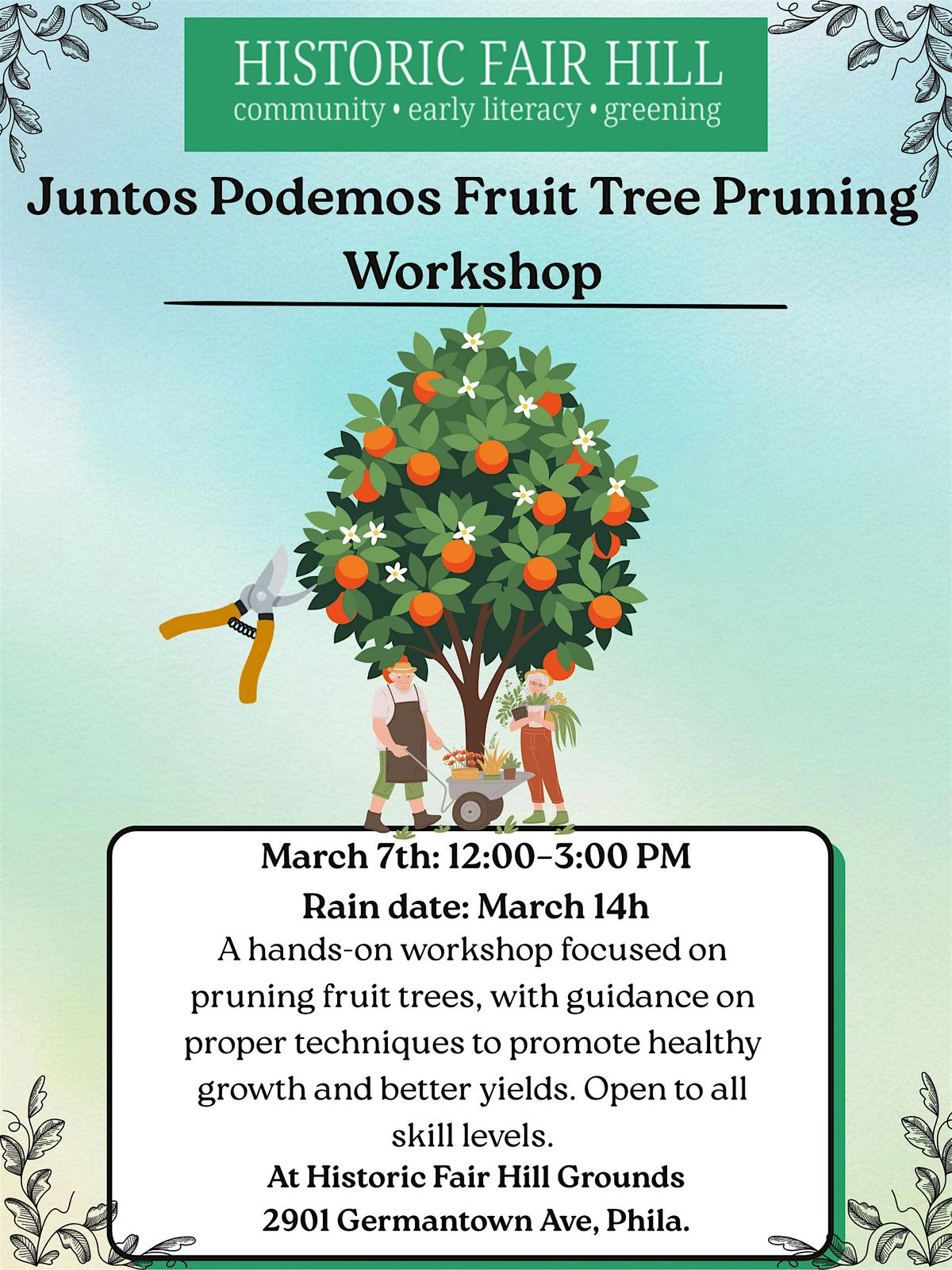 Workshop focused on pruning fruit trees, with guidance on proper techniques to promote healthy growth and better yields. Open to all.