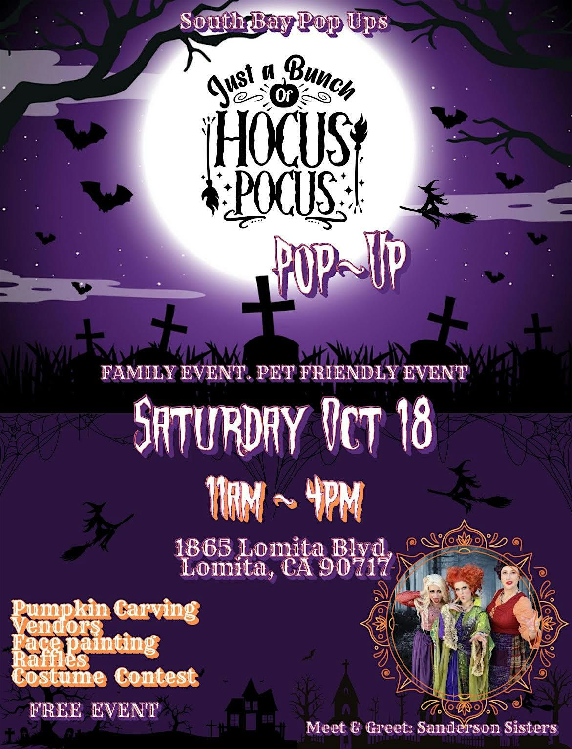 Welcome to the Just a Bunch of Hocus Pocus Pop Up Market! Join us at the Veterans of Foreign Wars for a spooktacular event filled with magical finds and witchy wonders. Whether you're looking for potions, crystals, or mystical treasures, you'll find it all here. Browse through a variety of vendors offering enchanting goods that will add a touch of magic to your life. Meet the Sanderson Sisters and be careful they dont cast a spell on you!