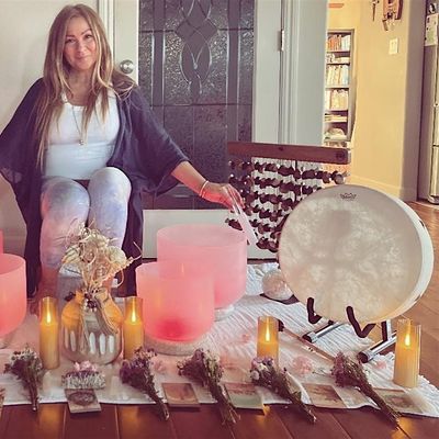 Through intuitive sound frequencies and high-vibrational crystal bowls, chimes, and drums,