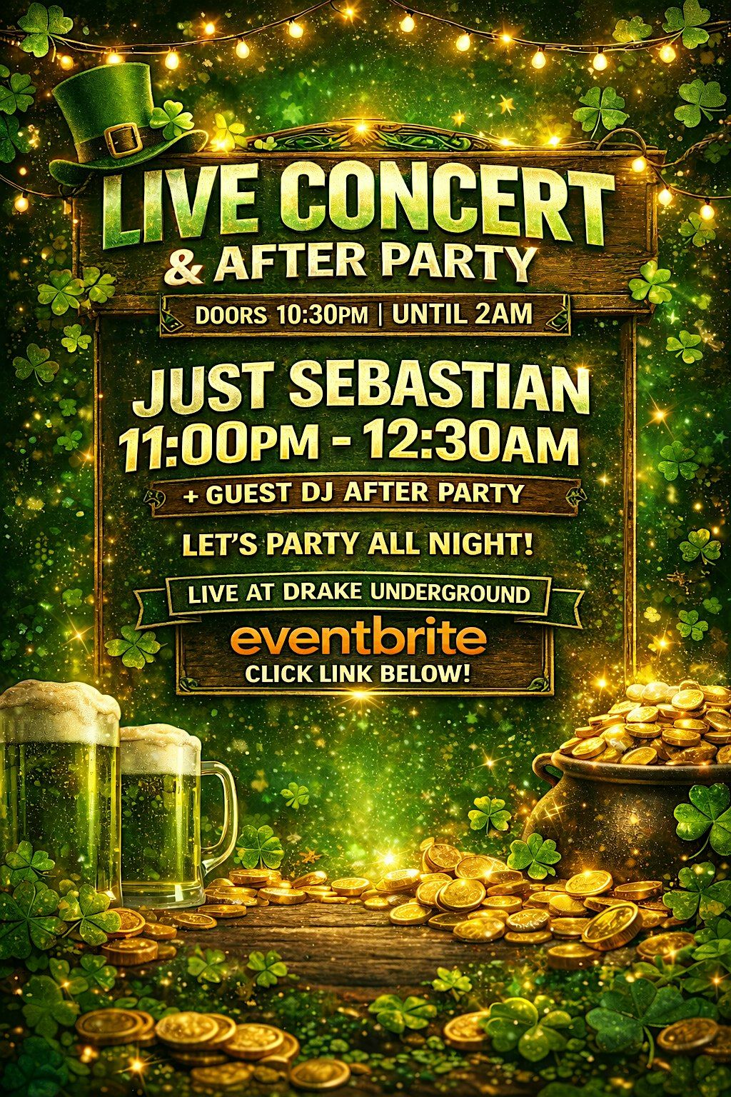 live set by Just Sebastian 11-12:30, DJ takes over till 2AM. Drinks, dancing, and late night chaos. March 14th.