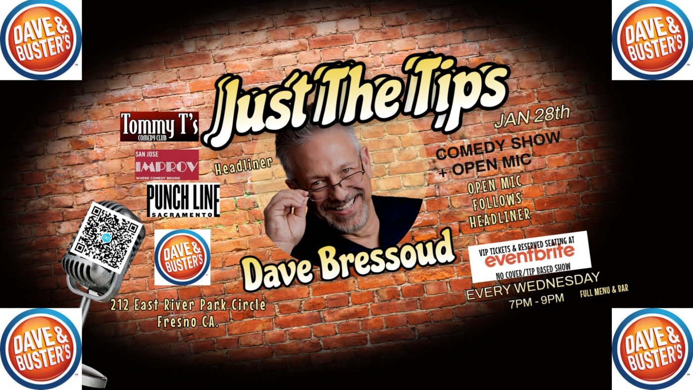 Join us at Dave & Buster's Fresno on February 25, 2026 at 7:00 PM for Just The Tips Headlining Aaron Weaver! Get ready for a night of laughter and fun with the hilarious Aaron Weaver. Don't miss out on this fantastic event!